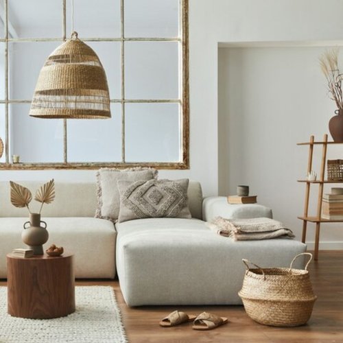 Embraces light, airy interiors with natural materials, cozy textures, and a neutral color palette for a warm and inviting atmosphere.